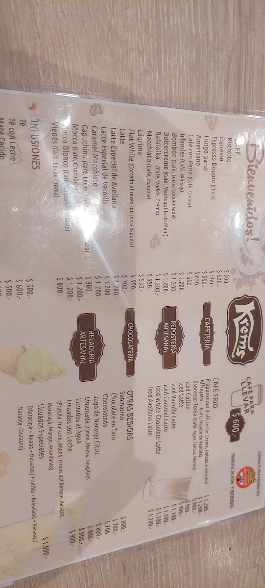 Cafeteria Heladeria y Chocolateria Krems Menu
